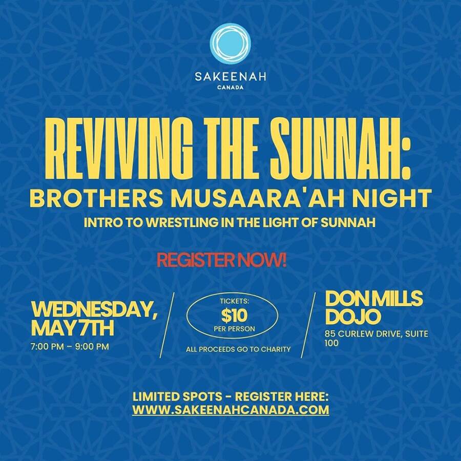 Whether you’re new to wrestling or have experience, this is your opportunity to engage in a Sunnah of the Prophet ﷺ, build brotherhood, and recharge your soul — all while supporting a great cause, all proceeds are donated to Sakeenah.