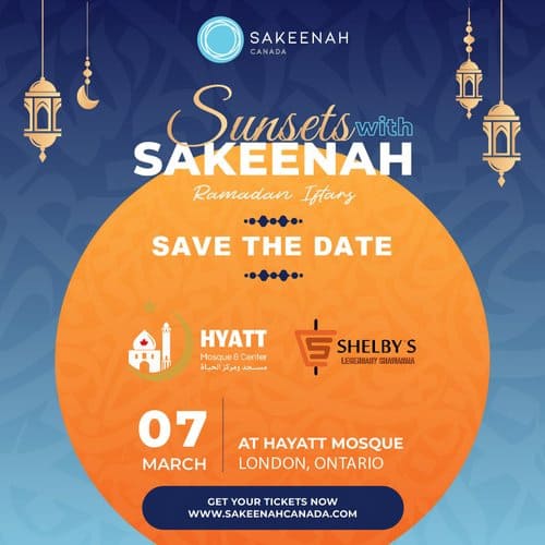 Join us for a memorable Sunsets with Sakeenah Iftar in London at the Hyatt Mosque, featuring a delicious iftar from Shelby’s Shawarma! Enjoy a special evening of food, community, and purpose while supporting our Sakeenah London transitional home.