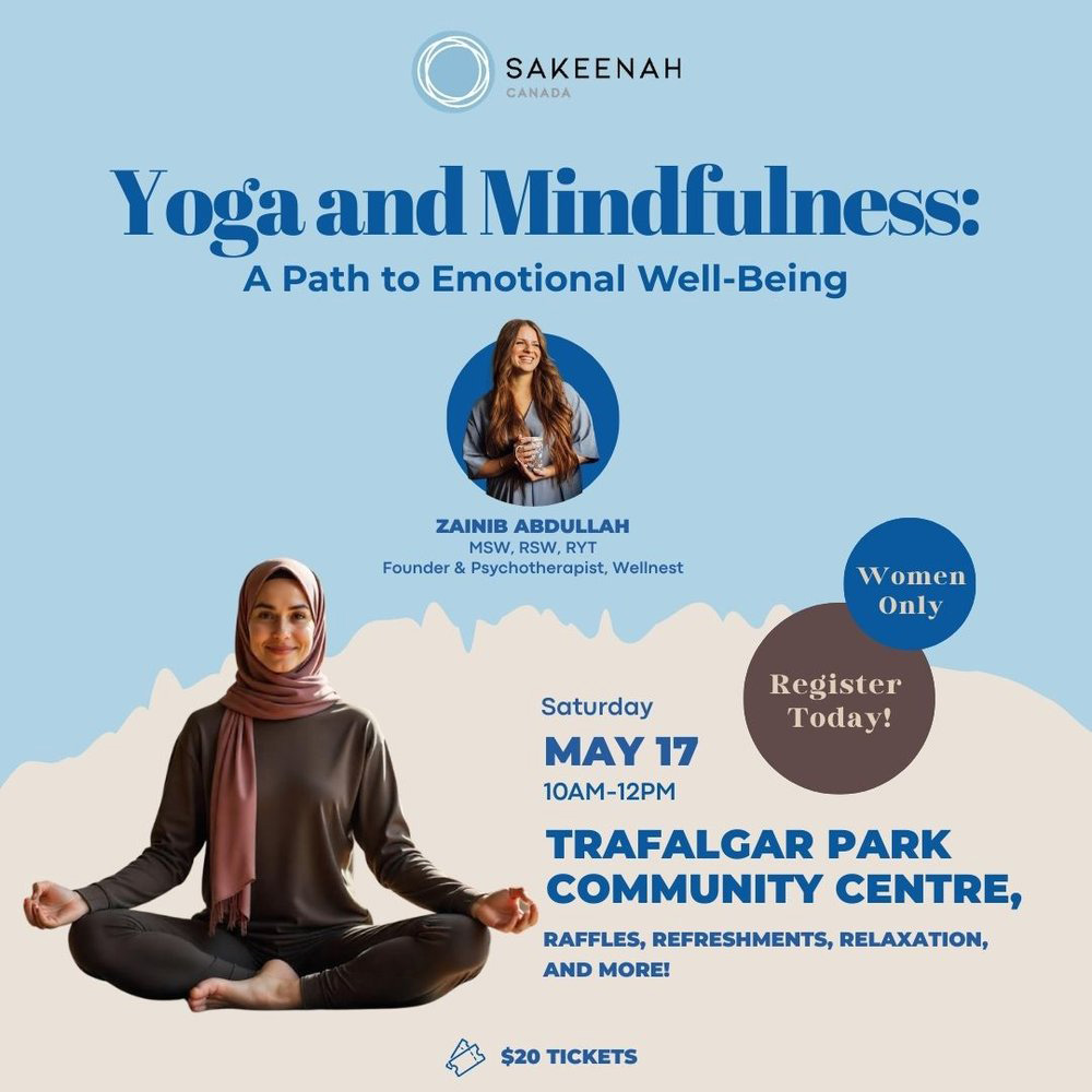Join us for morning of yoga & and mindfulness led by Zainib Abdullah, Psychotherapist and Founder of Wellnest. This event aims to provide women with a safe & supportive space to explore the benefits of yoga & mindfulness for mental & emotional well-being.